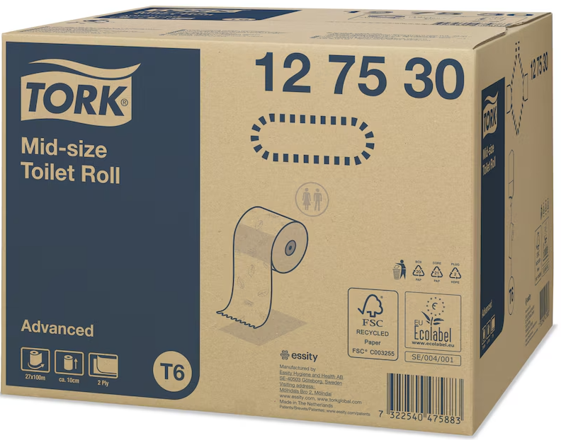 ● Tork Dispenser Mid-size Twin Toalettpapper är ett modernt och effektivt system som passar perfekt för toalettutrymmen med låg till medelhög trafik där man har stort fokus på att göra besökarna nöjda. Systemet garanterar hög effektivitet och att toalettpapper alltid är tillgängligt. Tork Mid-size Toalettpapper i Advanced-kvalitet har en effektiv balans mellan kostnad och prestanda.