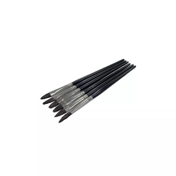 36/8st Stenskottspenslar. Lackerat trähandtag och mjuk oxöronshår. Rund form på penselhuvud.