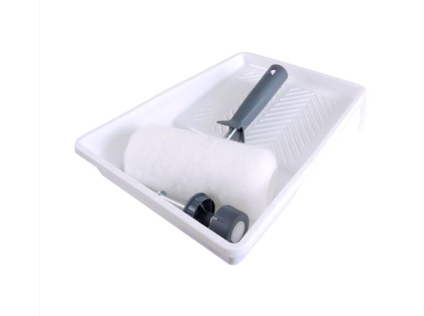 Rollerset för allmän målning. Roller som ger medium/grov yta. Vit polyester roller med kopplingsbar bygel med plasthandtag och förzinkad tråd.