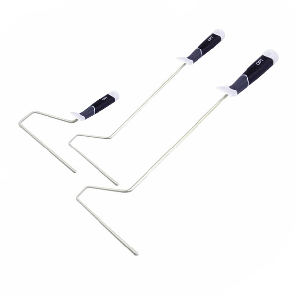 Kraftig rollerbygel i förzinkad 8mm tråd. Passar stickrollers som har en kraftig konstruktion. Ofta för golv och fasadmålning. Kopplingsbart ergonomiskt gummerat handtag.
