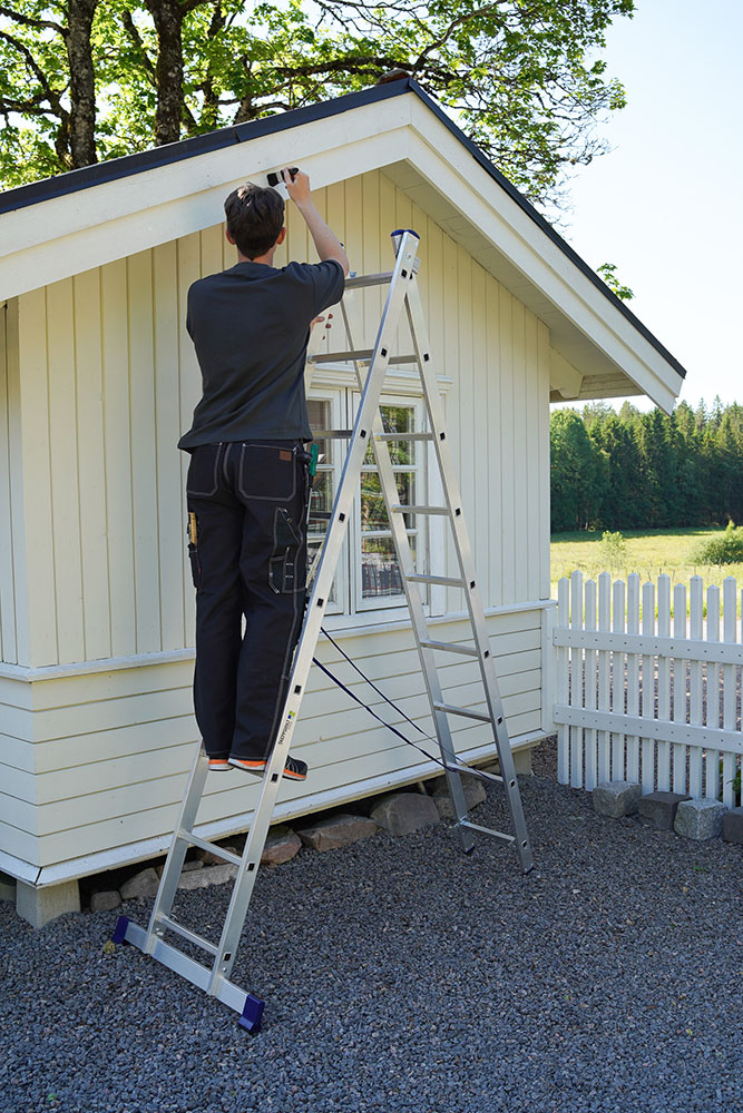 Stegen kan användas som fristående kombi- eller utskjutstege.