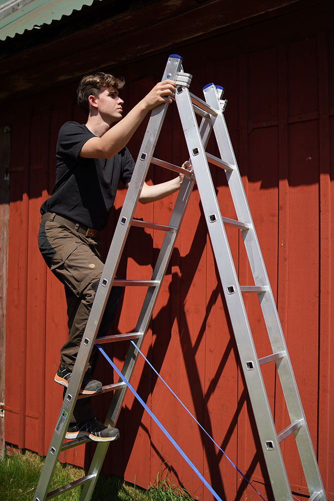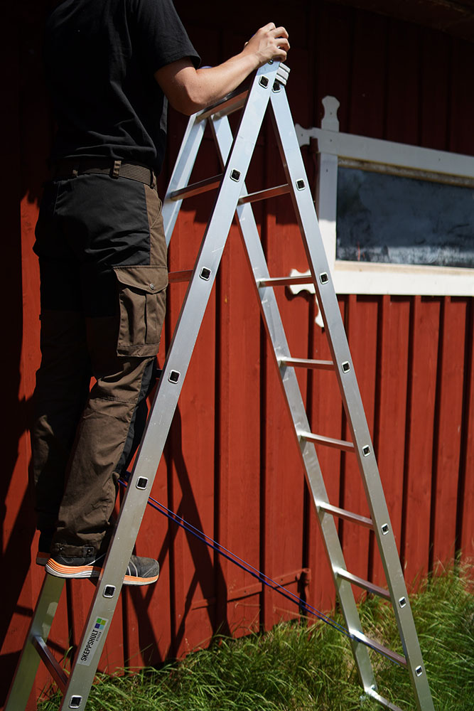 Stegen kan användas som fristående kombi- eller utskjutstege.