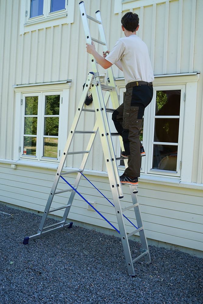 Stegen kan användas som fristående kombi- eller utskjutstege.