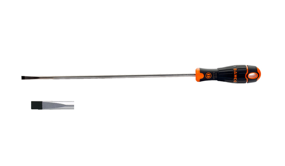 Varumärke Bahco EAN 7314150277964 Typ Skruvmejsel Material Stål Färg Orange Längd 19.5 cm Diameter 3.5 mm Vikt 39 g Storlek 3.5 x 0.6 x 100 mm - Produktblad